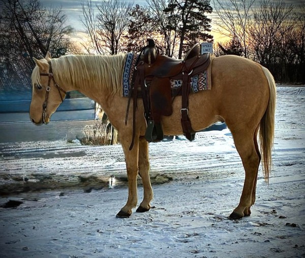 NOTES: 15 hand 3 yr old filly just started under saddle this fall by a novice amateur. Could go any direction you point her in. Very DIY friendly. Has APHA points in in hand trail, halter, and lunge line from very limited showing. Is qualified for NSBA color breeders championship futurity, breeders futurity, incentive fund and in APHA breeders trust.