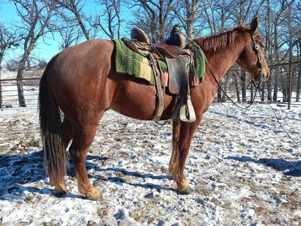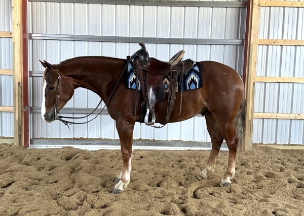 Chester is a 15 year old sorrel gelding standing 15hh. He’s a safe “been there, done that” ranch gelding that will be a good kid’s step up horse, or perfect for a beginner to learn all the ranching basics on. He’ll side pass, spin, work cattle, throw a rope off of. Nice all-around gelding that will take you safely down the trail. Call Amber for any questions 920-420-9093.