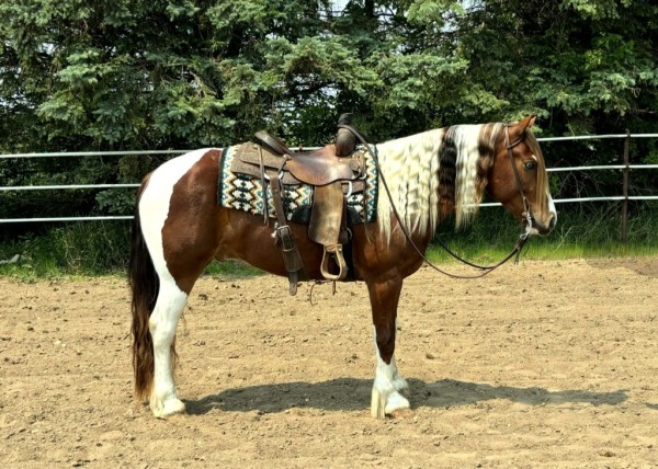 Shadow is a 14.1hh 5 year old Gypsy cross gelding with smooth gaits and transitions, knows his leads, pivots, and has a great stop. Used for parades, trick riding, mounted shooting, and Skijoring. Will pick you up at the mounting block and lays down on command. Has been extensively shown and trail ridden. Rides indoors and outdoors. Call Amber for any questions 920-420-9093.