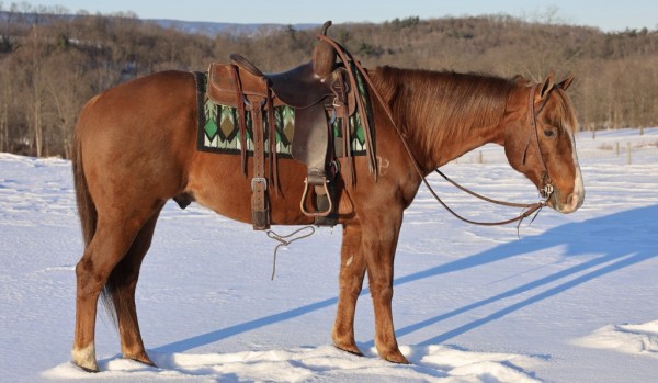 Cruiser is a 12yr old Chestnut Gelding. He stands approx. 15hh tall. Cruiser has been there done that. Go gather cattle or hit the trails. Cruiser is ready for any type of discipline! He’s fun to ride and super broke! Cruiser will slow lope on a loose rein! He’s one anyone will get along with! FMI call Carley @ 717-250-4704