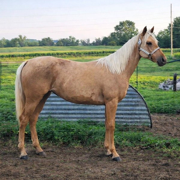 Taffy is a gorgeous grade palomino filly foaled May 6, 2024 & stands approx 14.2 hands currently. She is sired by El Ante & is out of a, now grade, Chestnut appaloosa mare (issue with paper transfer to current owner). She is halter broke & knows basics. She was put on the back burner & has been out in the pasture growing & being a horse. Take her & train her your way. She will make someone a wonderful open show or all around mount.