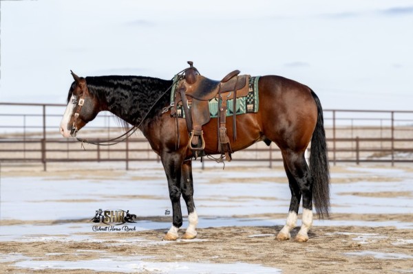 Rock is fully trained in reining, featuring an easy lead change, stylish and correct spins, and deep, smooth sliding stops. We’ve taken him out to county parks for trail rides and exposed him to a variety of unusual sights and situations. He’s stood at the hitching rail overnight with no issues, loads/unloads, and hauls with ease.